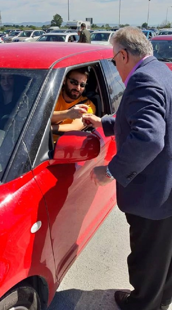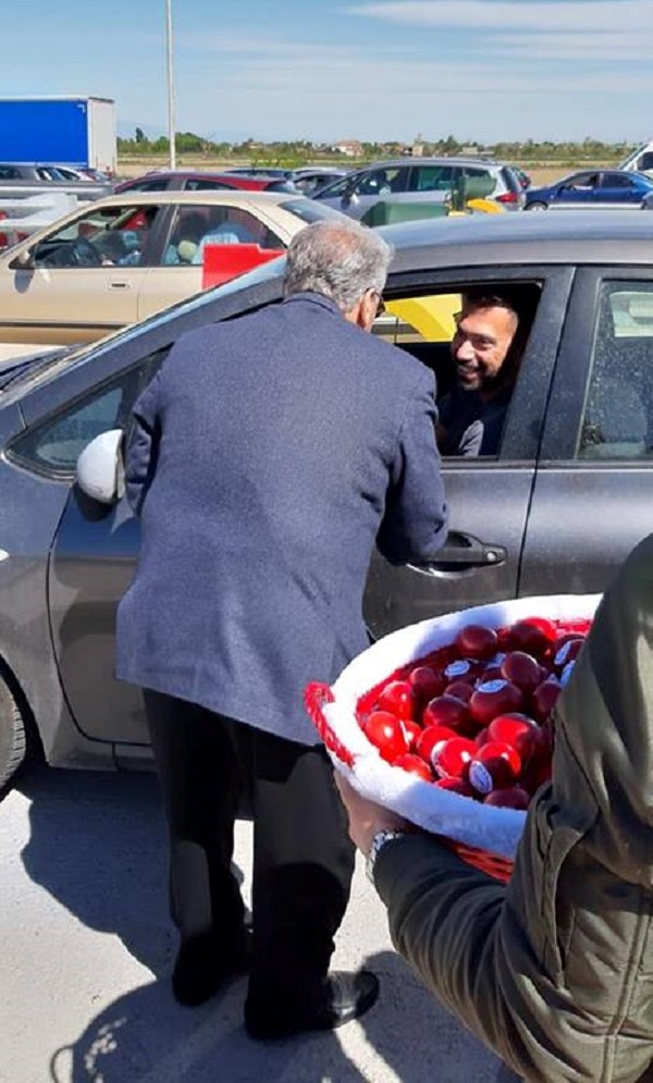 Ο κύριος Ψωμιάδης είχε την ευκαιρία να «τσουγκρίσει» με τους οδηγούς και να ανταλλάξουν ευχές για τις ημέρες του Πάσχα, με τον ίδιο να επισημαίνει σε σχετική δήλωση του τα εξής: «Σήμερα τσουγκρίζουμε για το καλό της ημέρας, από την 1η Σεπτεμβρίου είμαστε έτοιμοι να τα τσουγκρίσουμε με αυτούς που είναι διατεθειμένοι να “θάψουν” το εθνικό θέμα της Μακεδονίας, με αυτούς που θα αδιαφορήσουν για τα τοπικά προβλήματα της Θεσσαλονίκης και για τη νεολαία μας. Χριστός Ανέστη σε όλους, υγεία και ευτυχία!».