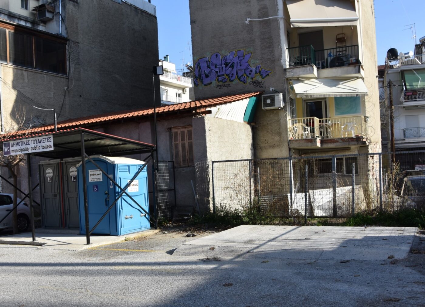 Κι ενώ οι τουαλέτες είχαν μετακινηθεί στην τελική τους θέση, παρέμενε η τσιμεντένια βάση η οποία προκαλούσε σοβαρό πρόβλημα ασφάλειας για τα οχήματα που στάθμευαν πάνω σ’ αυτήν.