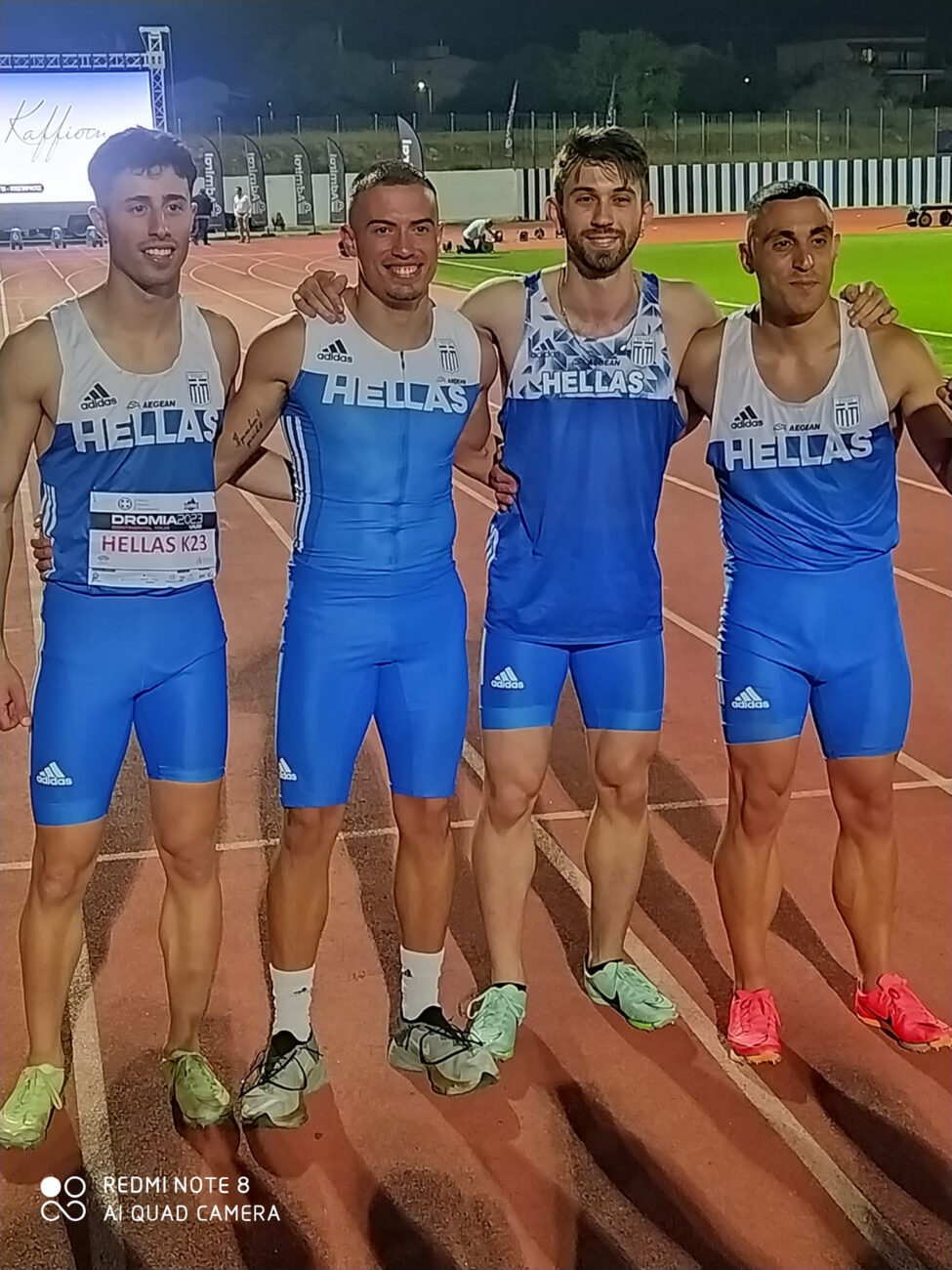 Σπουδαία εμφάνιση και νέο πανελλήνιο ρεκόρ πραγματοποίησε η τετράδα της ομάδας 4Χ100 μ. των Ανδρών Κ23 στα Δρόμεια. Οι Βασίλης Μυριανθόπουλος, Θοδωρής Βροντινός, Γιάννης Γρανιτσιώτης και Νίκος Παναγιωτόπουλος τερμάτισαν σε 39.92 και βελτίωσαν το 39.98 που κατείχαν οι Γκαβέλας, Πουλιόγλου, Γκούσης και Χοίδης από το μακρινό 1999.