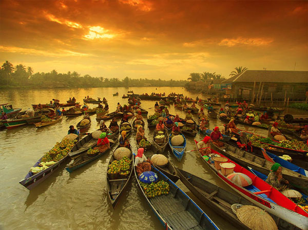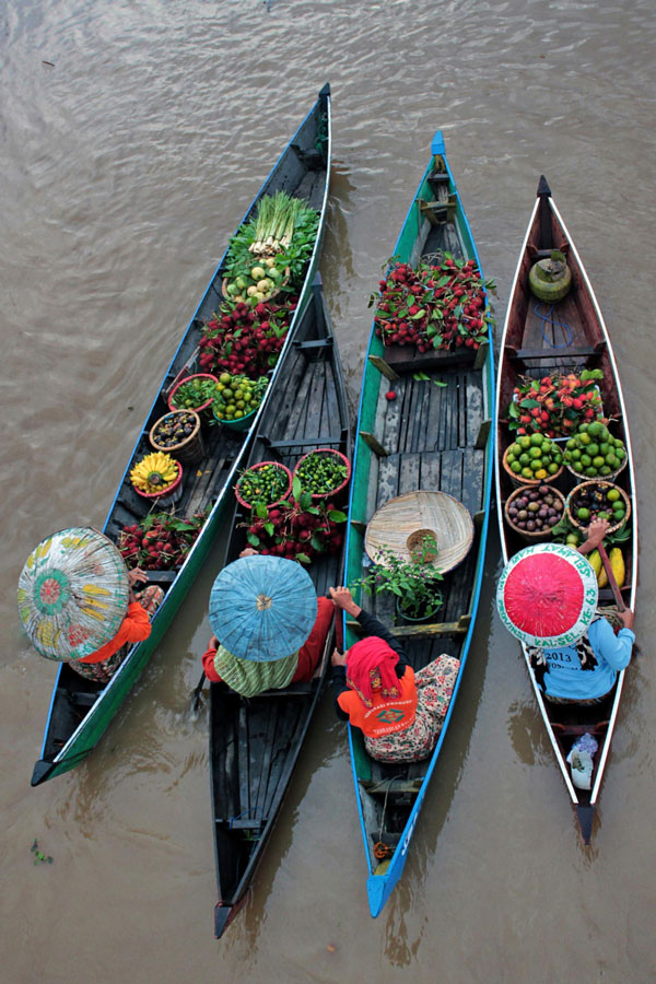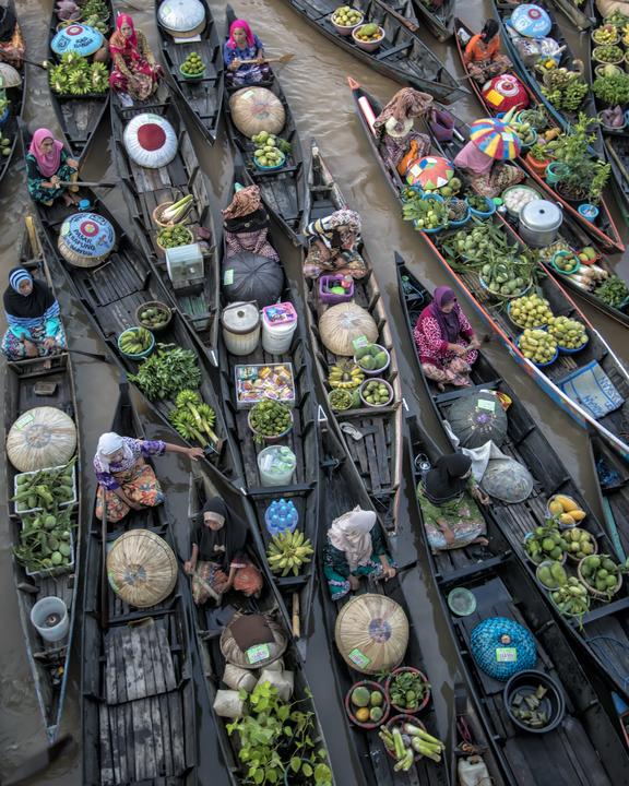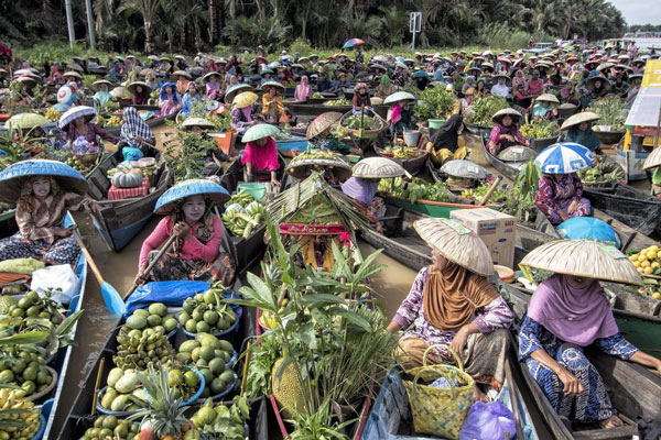 Το χωριό Lok Baintan στην Ινδονησία είναι διάσημο για την περίφημη πλωτή αγορά του, που πραγματοποιείται στον ποταμό Martapura. Εκεί συνωστίζονται πάνω από 500 σκάφη, τα οποία είναι επανδρωμένα από ντόπιες γυναίκες που πουλάνε τα υπάρχοντά τους μέσα σε βάρκες.