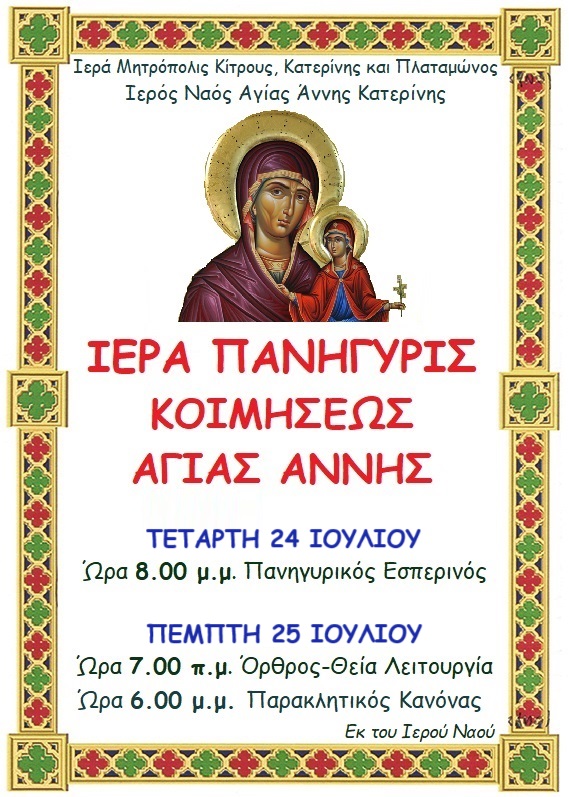 Πανηγυρίζει ο Ιερός Ναός Αγίας Άννης Κατερίνης