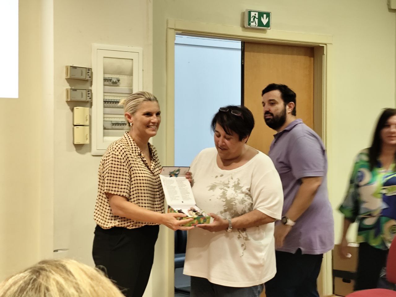 Στο τέλος της παρουσίασης δόθηκαν αναμνηστικά δώρα στην κα Βίκυ Χατζηβασιλείου, αντιπεριφερειάρχη και στον δημιουργό του λογοτύπου κο Σπύρο Τσιλιγκιρίδη.