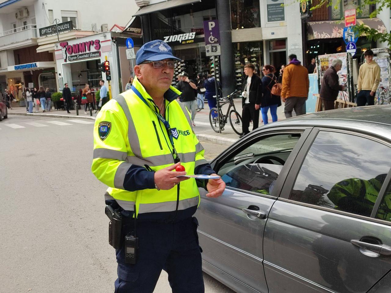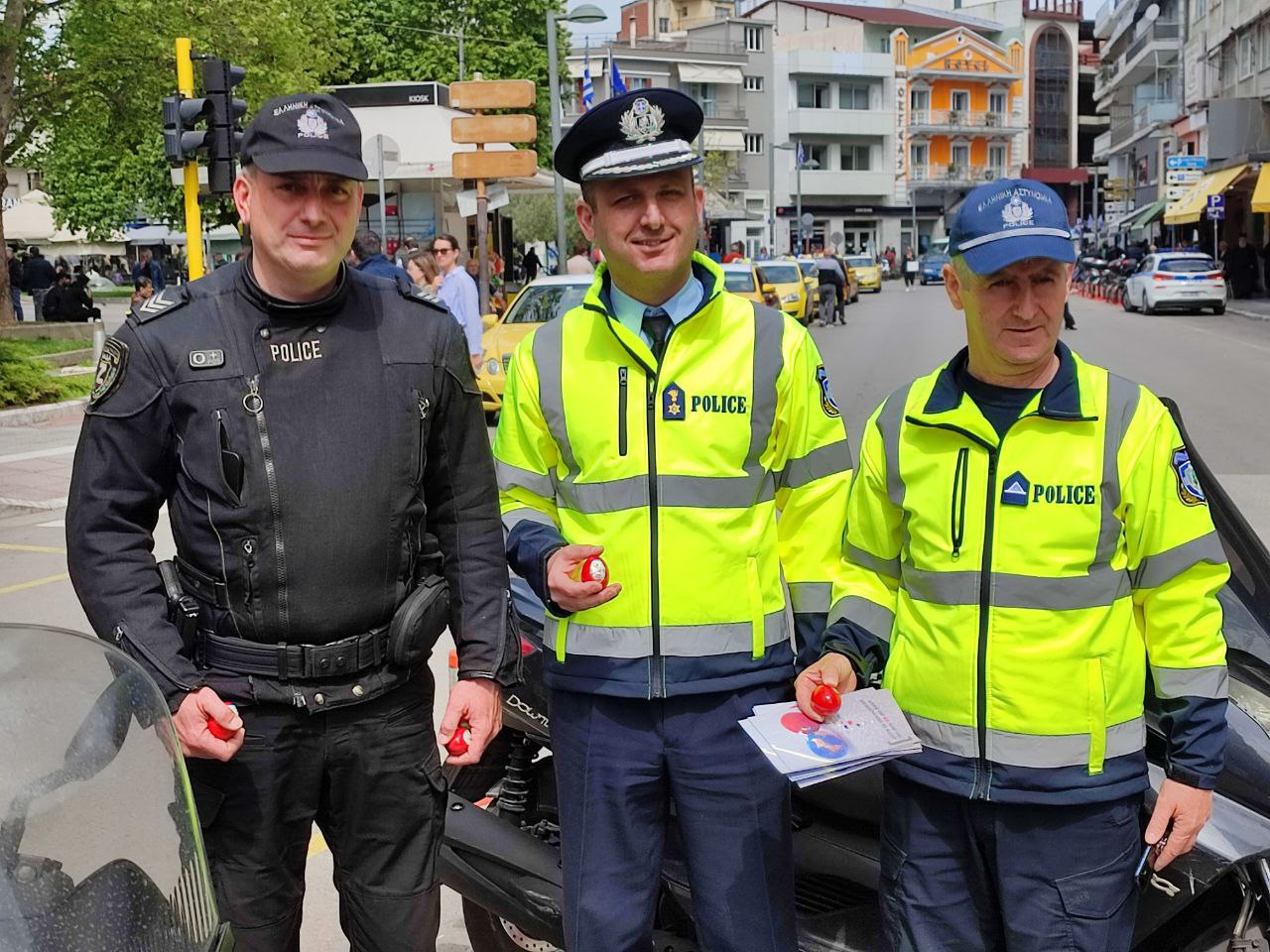 Μια ευχάριστη έκπληξη περίμενε τους οδηγούς που κινούνταν σήμερα στο κέντρο της Κατερίνης. Ο Διοικητής της Τροχαίας, κ. Γιώργος Πουτουρίδης, μαζί με άνδρες και γυναίκες τροχονόμους, βρέθηκαν στους κεντρικούς δρόμους της πόλης για να μοιράσουν πασχαλινές ευχές και κόκκινα αυγά.