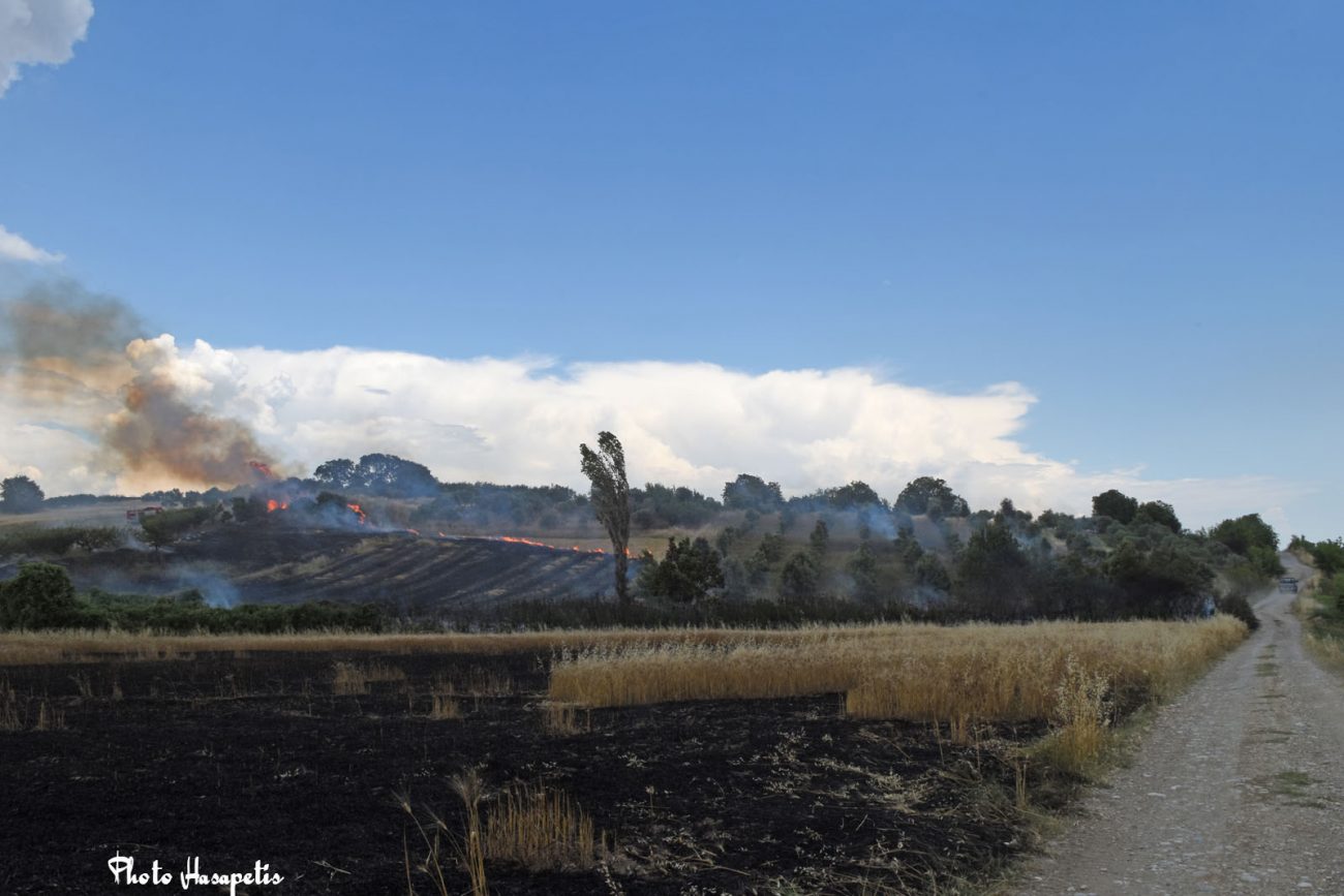 Η φωτιά εκδηλώθηκε σε πολλά σημεία της περιοχής καίγοντας δέντρα και σιτηρά.