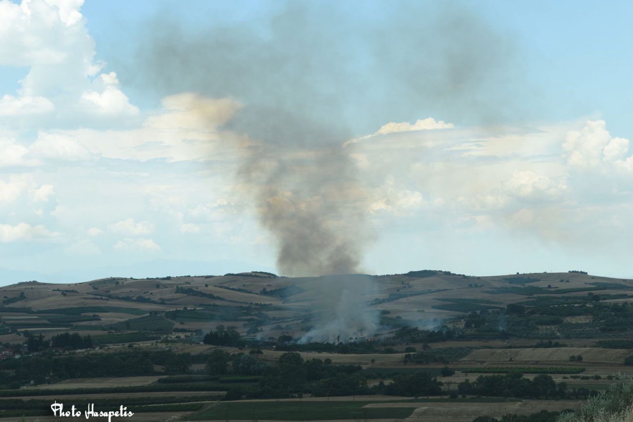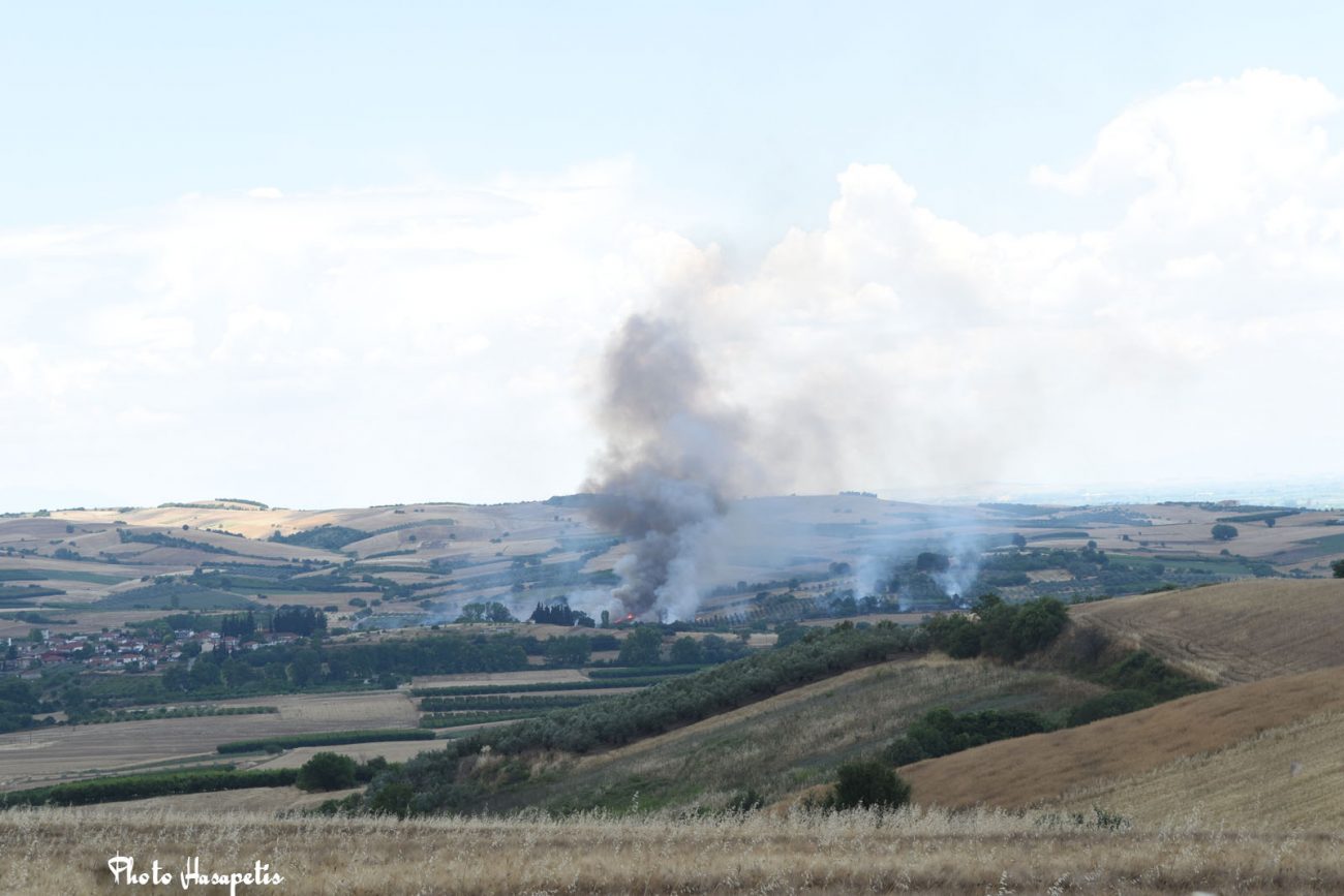 Μεγάλη φωτιά ξέσπασε σε αγροτική περιοχή πολύ κοντά στα Παλιάμπελα Πιερίας το μεσημέρι της Πέμπτης 17 Ιουνίου 2021.