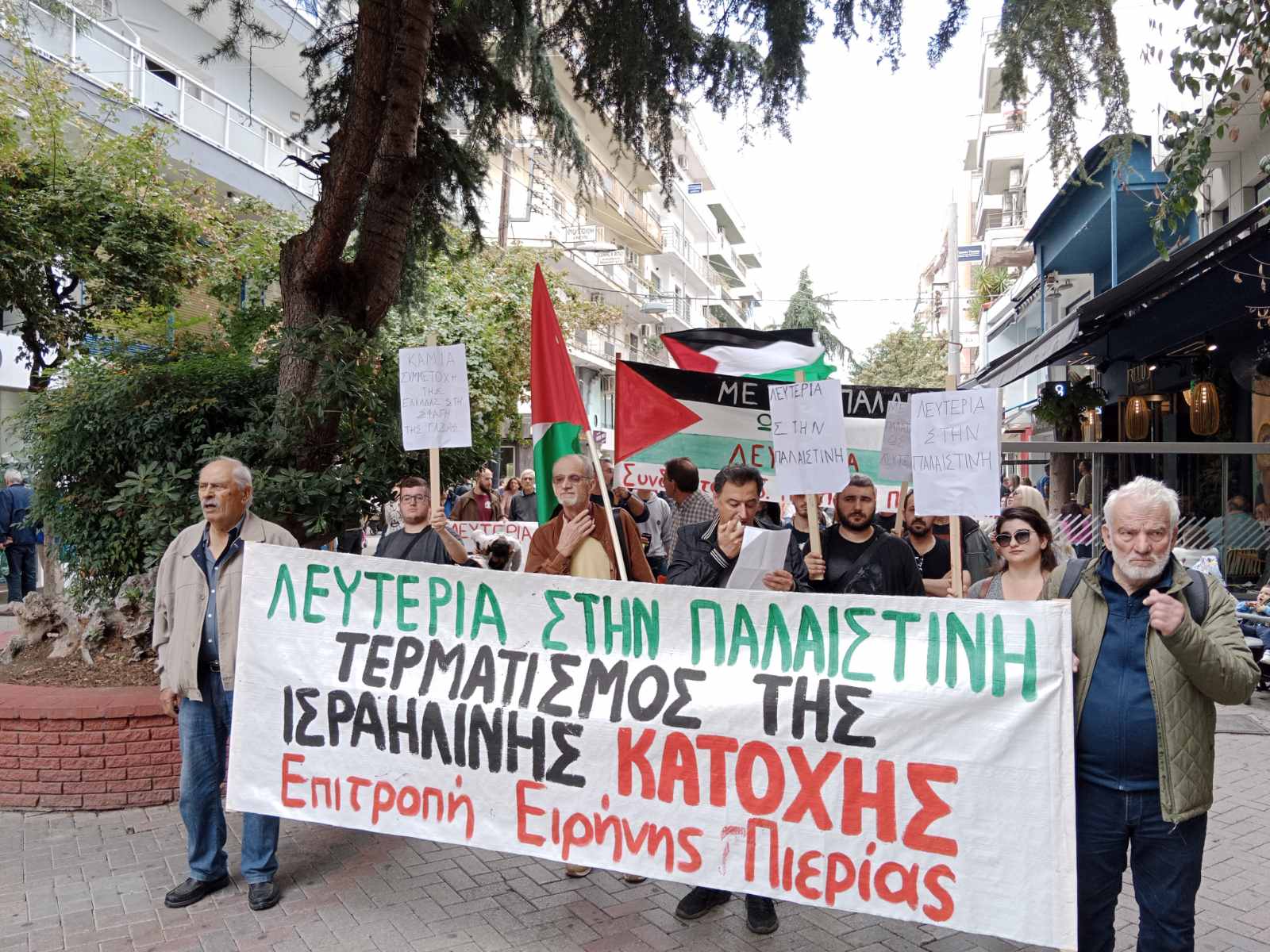 Με Παλαιστινιακές σημαίες και πικέτες στα χέρια τους, τα μέλη των σωματείων, οι αγωνιστές του αντιπολεμικού – αντιιμπεριαλιστικού κινήματος εκφράζουν την αμέριστη διεθνιστική αλληλεγγύη τους στον πολύπαθο λαό της Παλαιστίνης και στο δικαίωμά του να υπερασπίζεται τη χώρα του από την ξένη κατοχή!