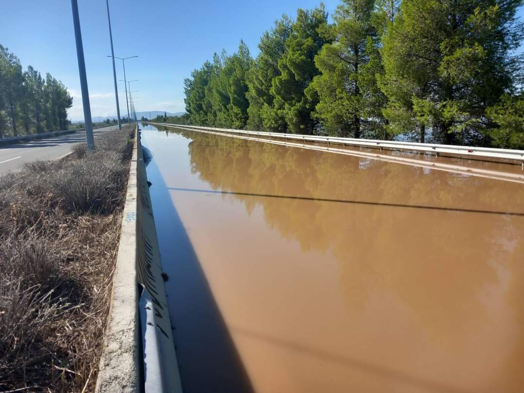 Εξακολουθεί να ισχύει η απαγόρευση κυκλοφορίας επί του Αυτοκινητόδρομου Αιγαίου λόγω εκτεταμένων πλημμυρικών φαινομένων στην περιοχή Γυρτώνης-Συκουρίου (Χ.Θ. 366).