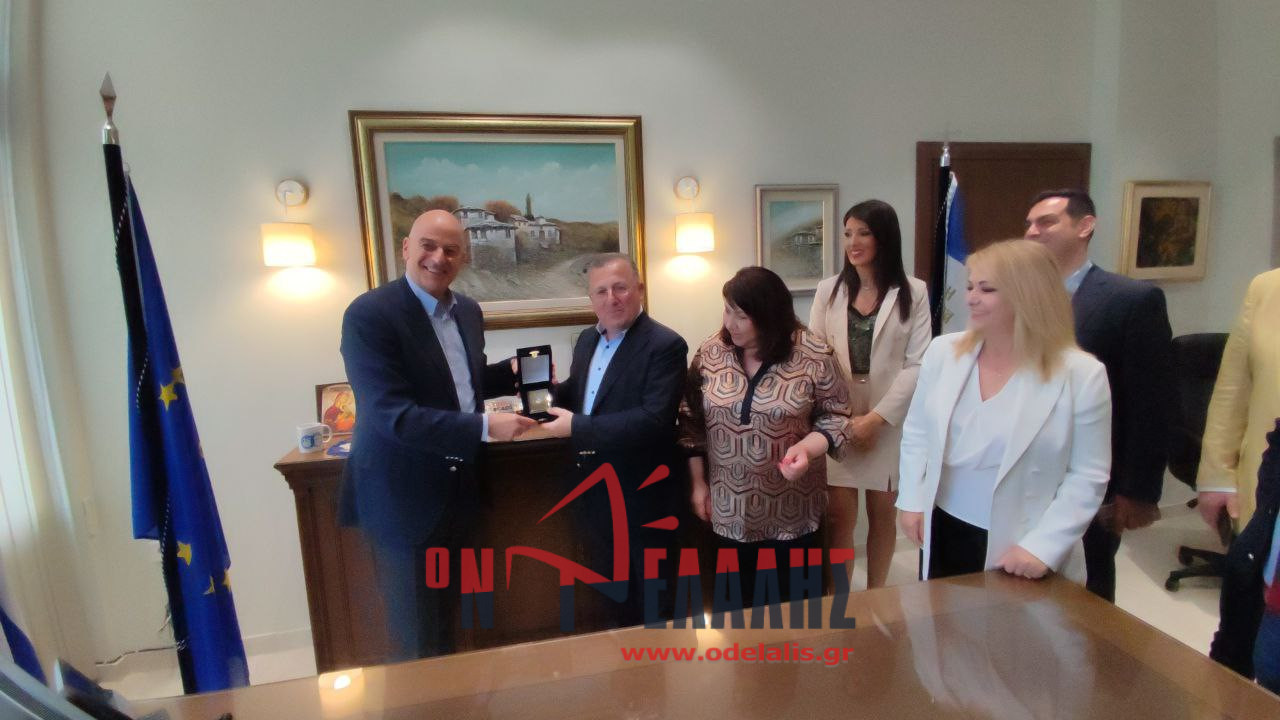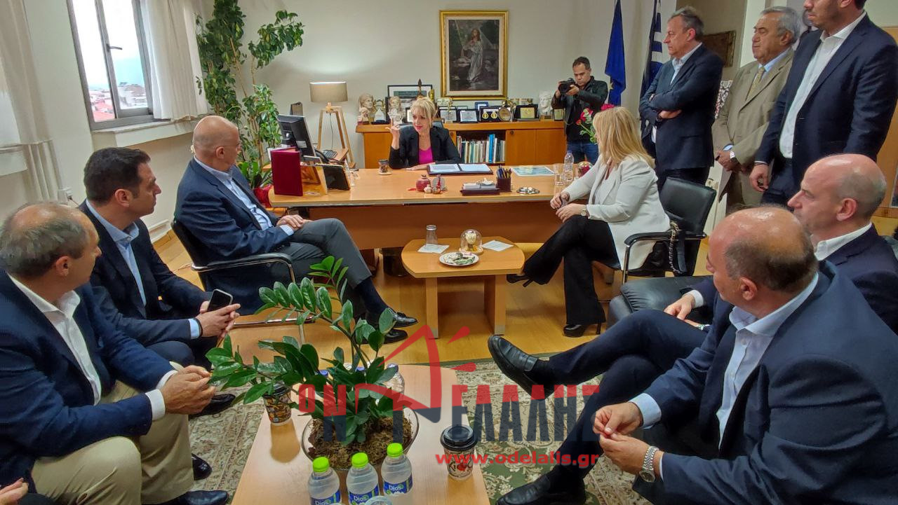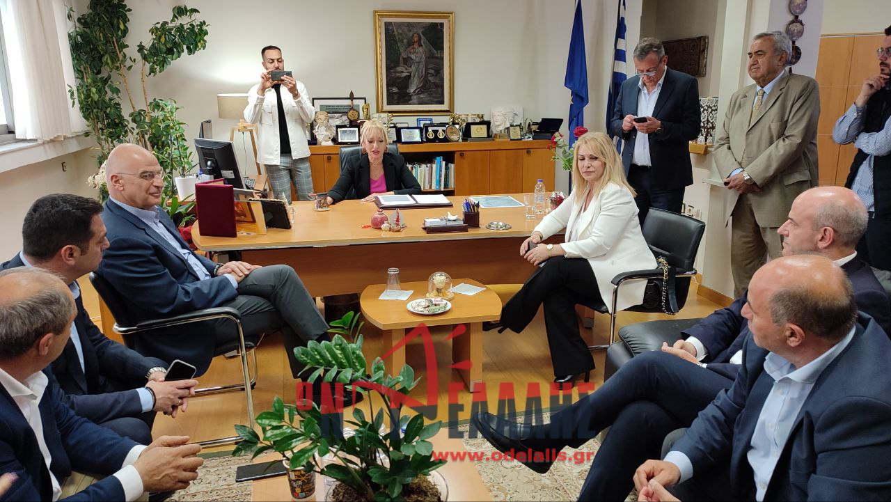 Ο υπουργός Εθνικής Άμυνας είχε επίσης συνάντηση στο κτίριο της Περιφερειακής Ενότητας Πιερίας και με την αντιπεριφερειάρχη Πιερίας Σοφία Μαυρίδου, η οποία είχε την ευκαιρία να το ενημερώσει για θέματα του νομού, αλλά και για τις μεγάλες δυνατότητες που έχει ο τόπος μας στον τουρισμό και στον πρωτογενή τομέα.