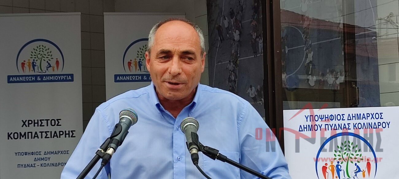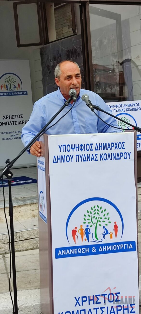 Ο υποψήφιος Δήμαρχος Πύδνας Κολινδρού Χρήστος Κομπατσιάρης, απευθυνόμενος προς τους συγχωριανούς του δεν μπόρεσε να κρύψει τη συγκίνησή του, καθώς ένα λαϊκό παιδί του τόπου σήμερα διεκδικεί τη θέση του Δημάρχου!