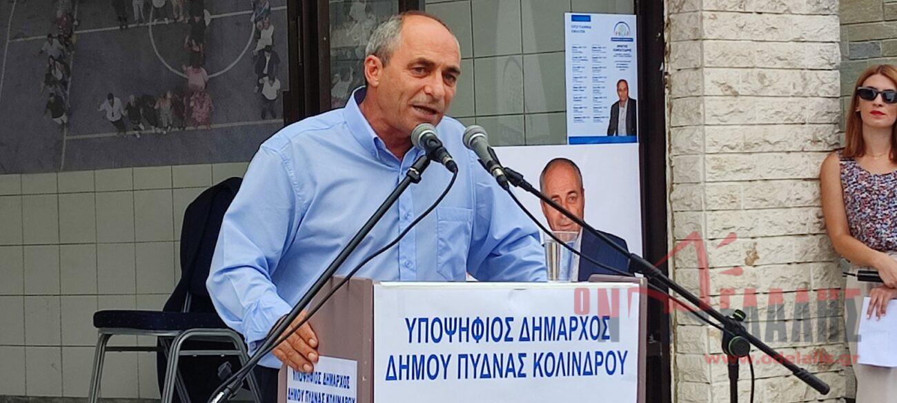 Ο υποψήφιος Δήμαρχος Πύδνας Κολινδρού απευθυνόμενος προς τους συγχωριανούς του τόνισε πως ο συνδυασμός του «Ανανέωση και Δημιουργία» αποτελείται κυρίως από νέους ανθρώπους, ζητώντας να τους στηρίξουν στις εκλογές της 8ης Οκτωβρίου. «Μην απογοητεύσετε όλα αυτά τα παιδιά», είπε χαρακτηριστικά.