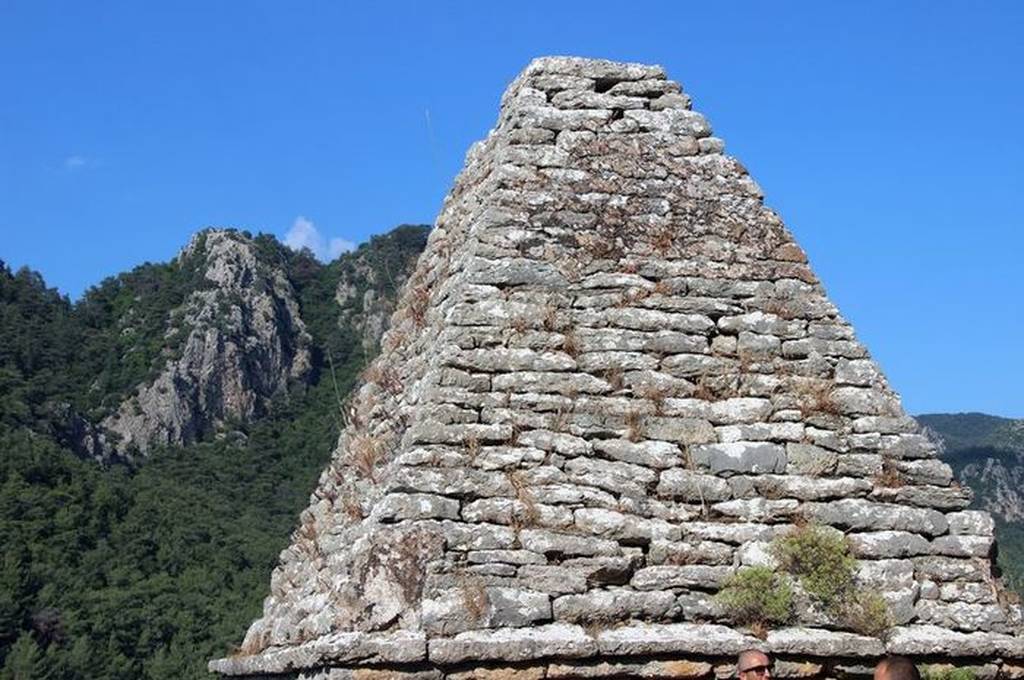 Ο τάφος που είναι ο μοναδικός στην Μικρά Ασία σε μορφή πυραμίδας, στην κορυφή του, σύμφωνα με ντόπιους, είχε αγάλματα του Διαγόρα του Ρόδιου πυγμάχου και της συζύγου του, που εκλάπησαν από αρχαιοκάπηλους όπως και κοσμήματα και αντικείμενα που εντόπιζαν σε παράνομες ανασκαφές.