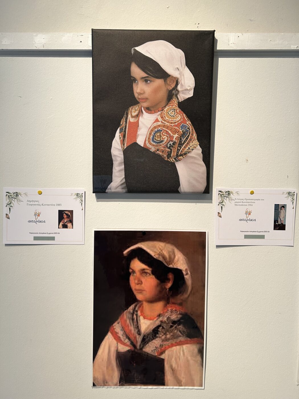 Η έκθεση επίσης περιλάμβανε πίνακες από φωτογραφίες των παιδιών του Νηπιαγωγείου που αναπαρέστησαν πορτρέτα ζωγράφων με θέμα τα παιδιά. Το σχέδιο εργασίας «Το παιδί στην ελληνική τέχνη» που εκπονήθηκε την τρέχουσα σχολική χρονιά  είχε  στόχο τη γνωριμία των νηπίων με πίνακες Ελλήνων ζωγράφων.