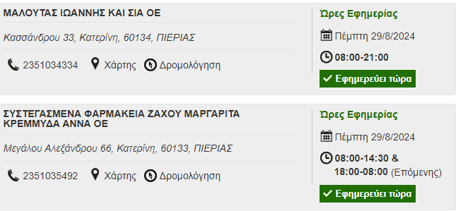Τα εφημερεύοντα Φαρμακεία σήμερα (29/08) στην Κατερίνη