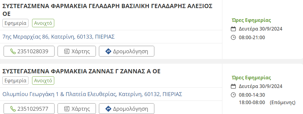 Τα εφημερεύοντα φαρμακεία σήμερα στην Κατερίνη