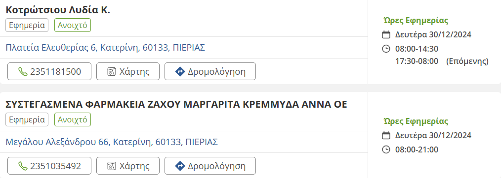 Τα εφημερεύοντα φαρμακεία σήμερα στην Κατερίνη