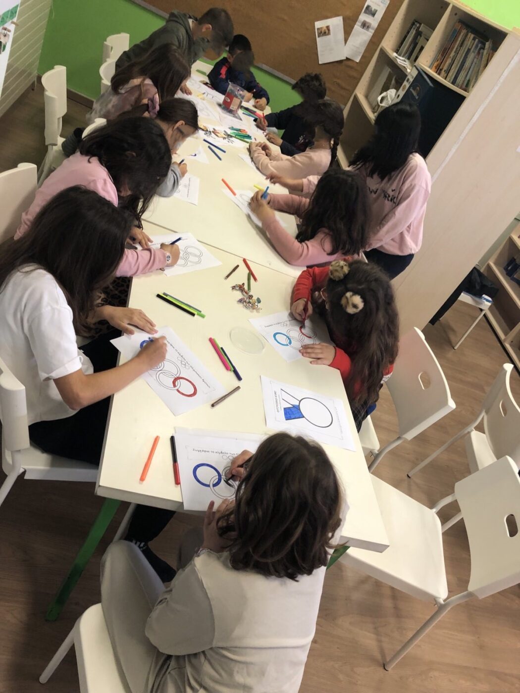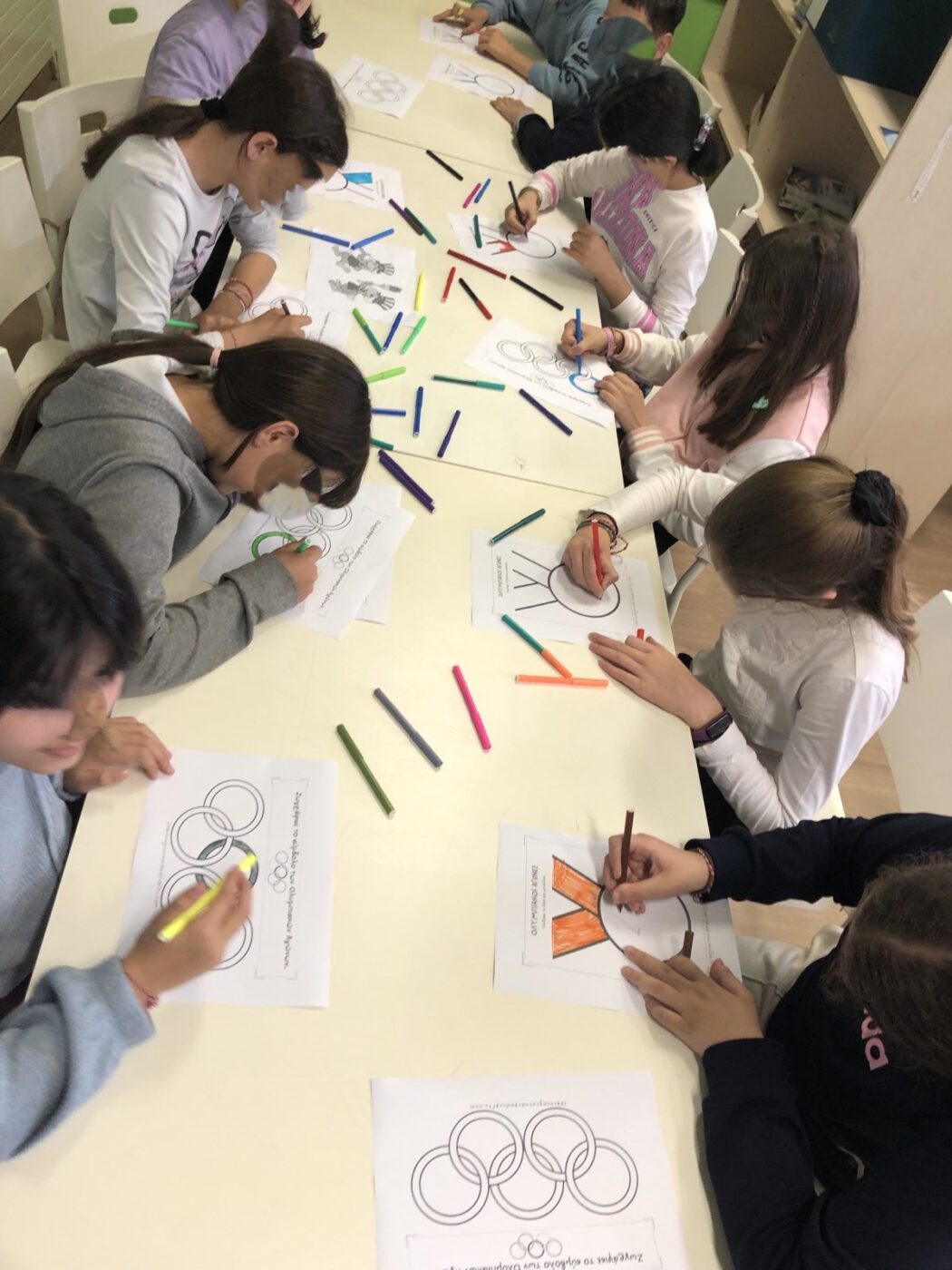 Συγκεκριμένα, στη βιβλιοθήκη του σχολείου, οι μαθητές μέσω οπτικοακουστικού υλικού ενημερώθηκαν για την ιστορία των Ολυμπιακών αγώνων από την γέννησή τους έως και σήμερα. Παράλληλα, απασχολήθηκαν δημιουργικά σε δράσεις κουίζ με επίκεντρο την εθνική ολυμπιακή ακαδημία, puzzle και ζωγραφική με θέμα τους Ολυμπιακούς Αγώνες.