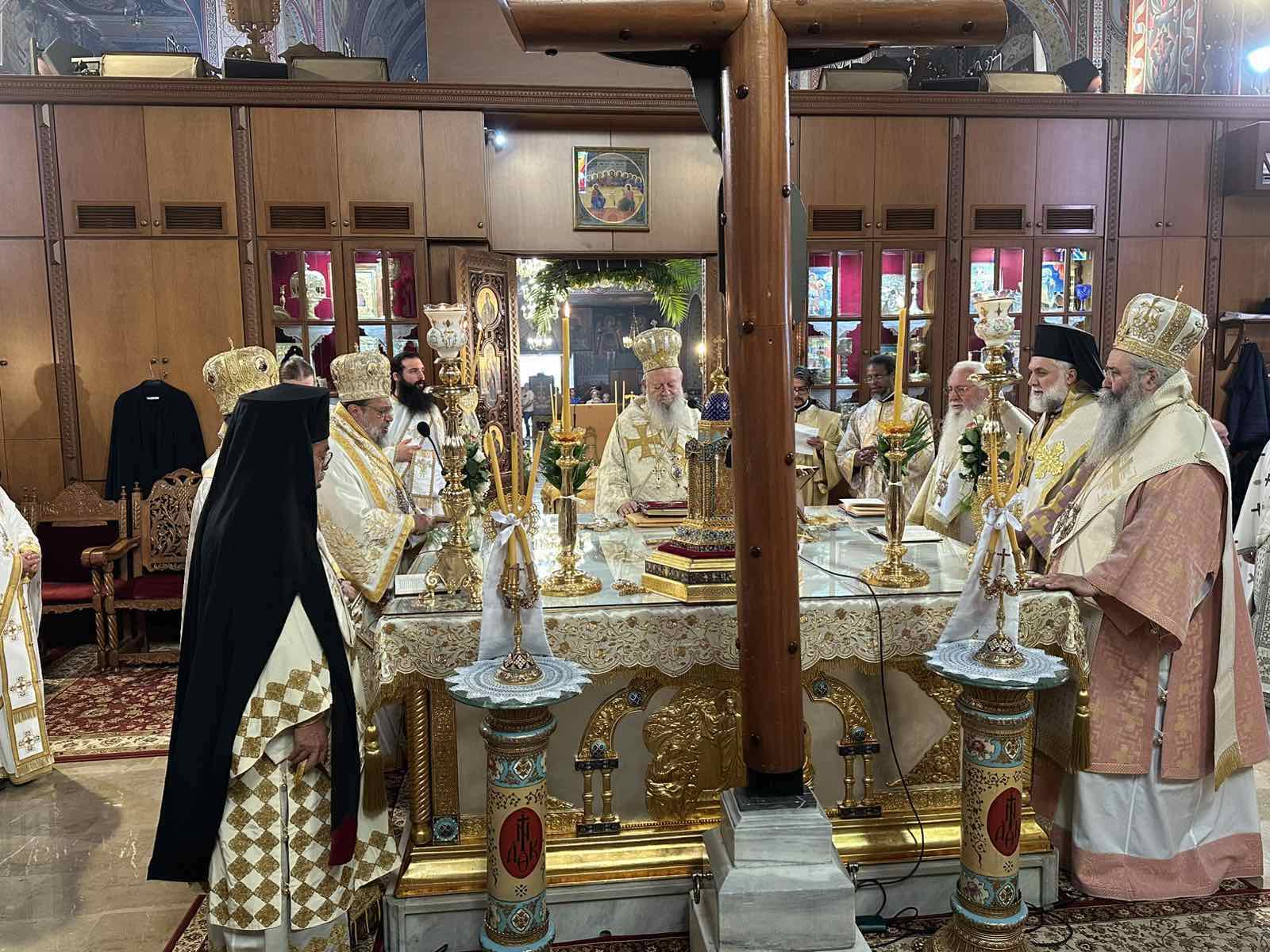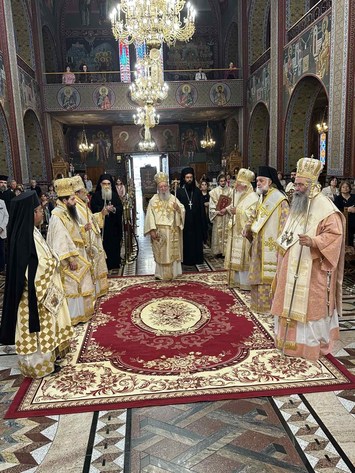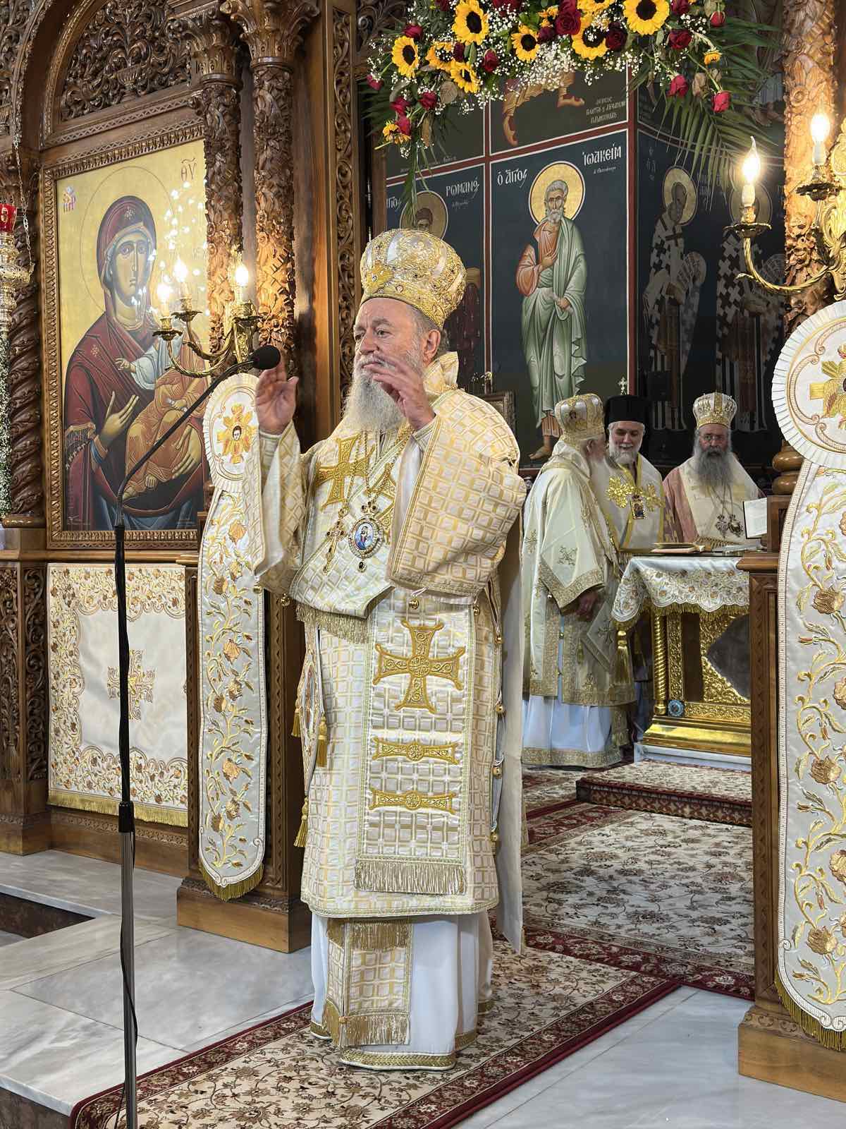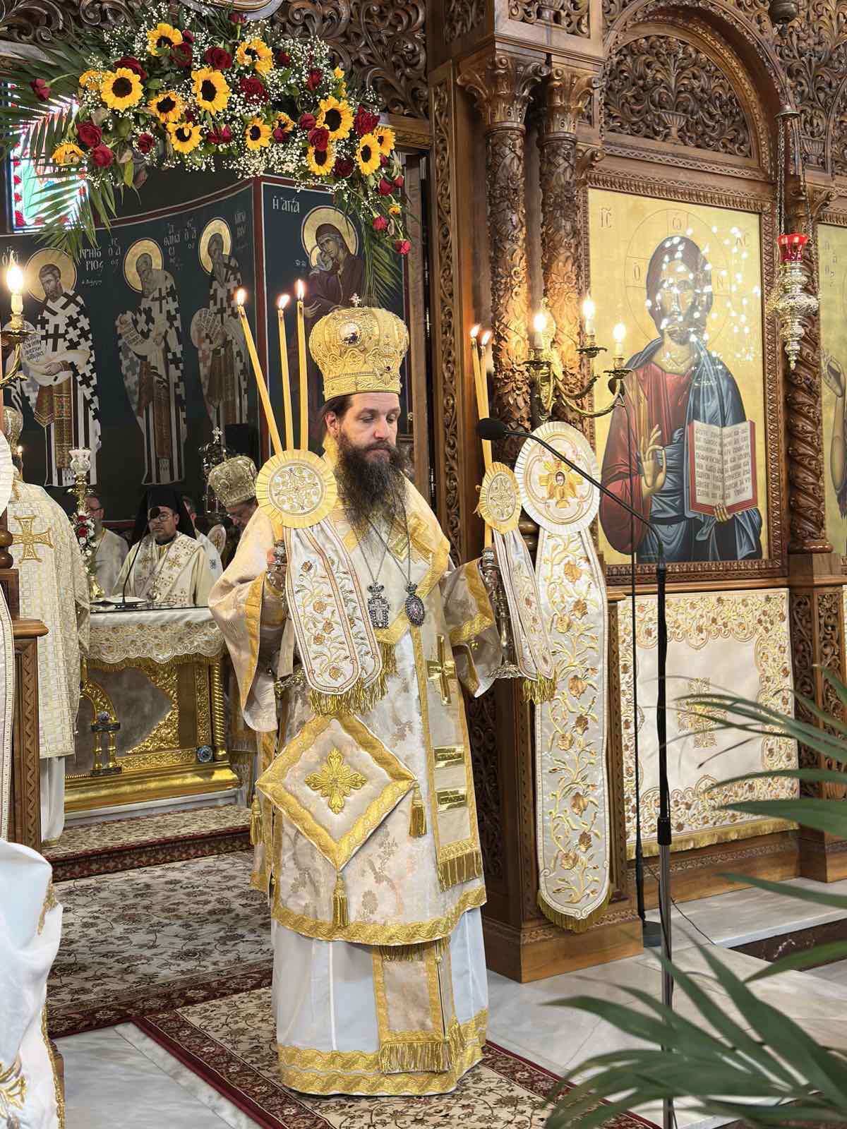 Κατά το Αρχιερατικό Συλλείτουργο, ιερούργησαν οι Σεβασμιώτατοι και Θεοφιλέστατοι Αρχιερείς Χαλκίδος, Ιστιαίας και Βορείων Σποράδων κ. Χρυσόστομος, Μεσσηνίας κ. Χρυσόστομος, Θηβών, Λεβαδείας και Αυλίδος κ. Γεώργιος, Σισανίου και Σιατίστης κ. Αθανάσιος, Σκοπέλου κ. Νικόδημος, Άσσου κ. Τιμόθεος και ο οικείος Ποιμενάρχης κ. Γεώργιος. Συλλειτούργησαν επίσης πολλοί κληρικοί από διάφορες Ιερές Μητροπόλεις. Παρέστη συμπροσευχόμενος ο Σεβασμιώτατος Μητροπολίτης Γέρων Καισαρείας κ. Θεοφύλακτος.
