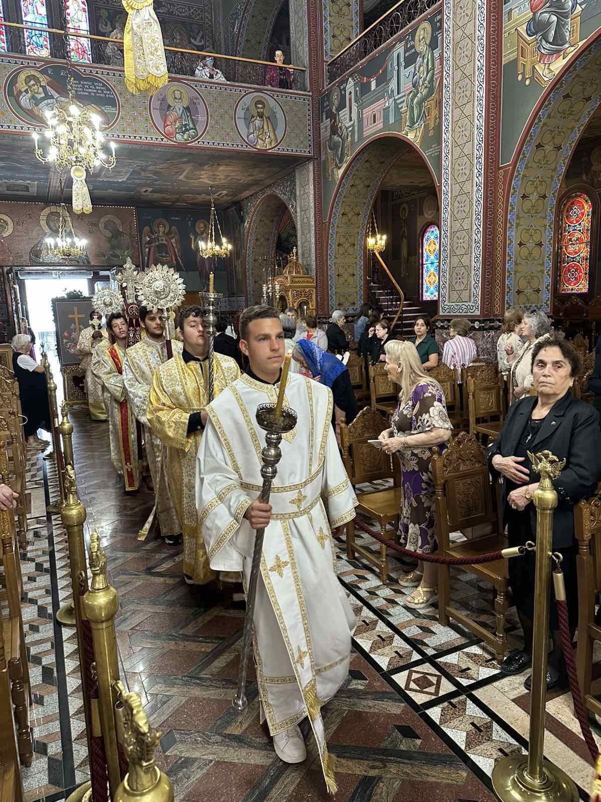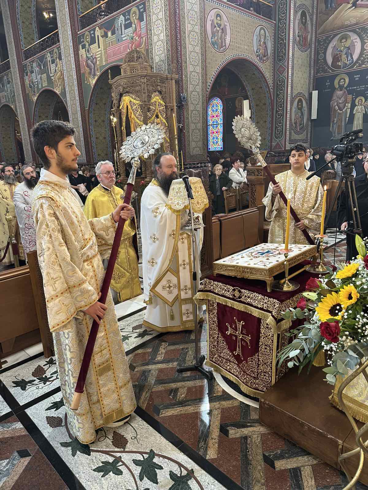 Προηγήθηκε ο Όρθρος χοροστατούντος του Σεβασμιωτάτου Μητροπολίτου Μεσσηνίας κ. Χρυσοστόμου, ο οποίος κήρυξε και τον θ. λόγο. και το Αρχιερατικό Συλλείτουργο, προεξάρχοντος του Σεβασμιωτάτου Μητροπολίτου Χαλκίδος, Ιστιαίας και Βορείων Σποράδων κ. Χρυσοστόμου.