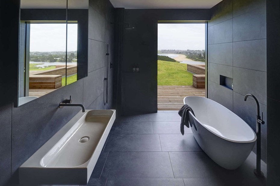 Παράπλευρα του καθιστικού οι γυάλινες πόρτες ανοίγουν σε δύο ξύλινες βεράντες. Από την μια οι επισκέπτες μπορουν να απολαύσουν την θέα στο βουνό, ενώ από την άλλη έχουν την δυνατότητα να κάνουν μπάνιο σε μια πισίνα με απεριόριστη θέα στην παραλία Werri. Τέλος, οι επισκέπτες μπορούν να περιπλανηθούν στην ακτή και να απολαύσουν την ιδιωτική παραλία.