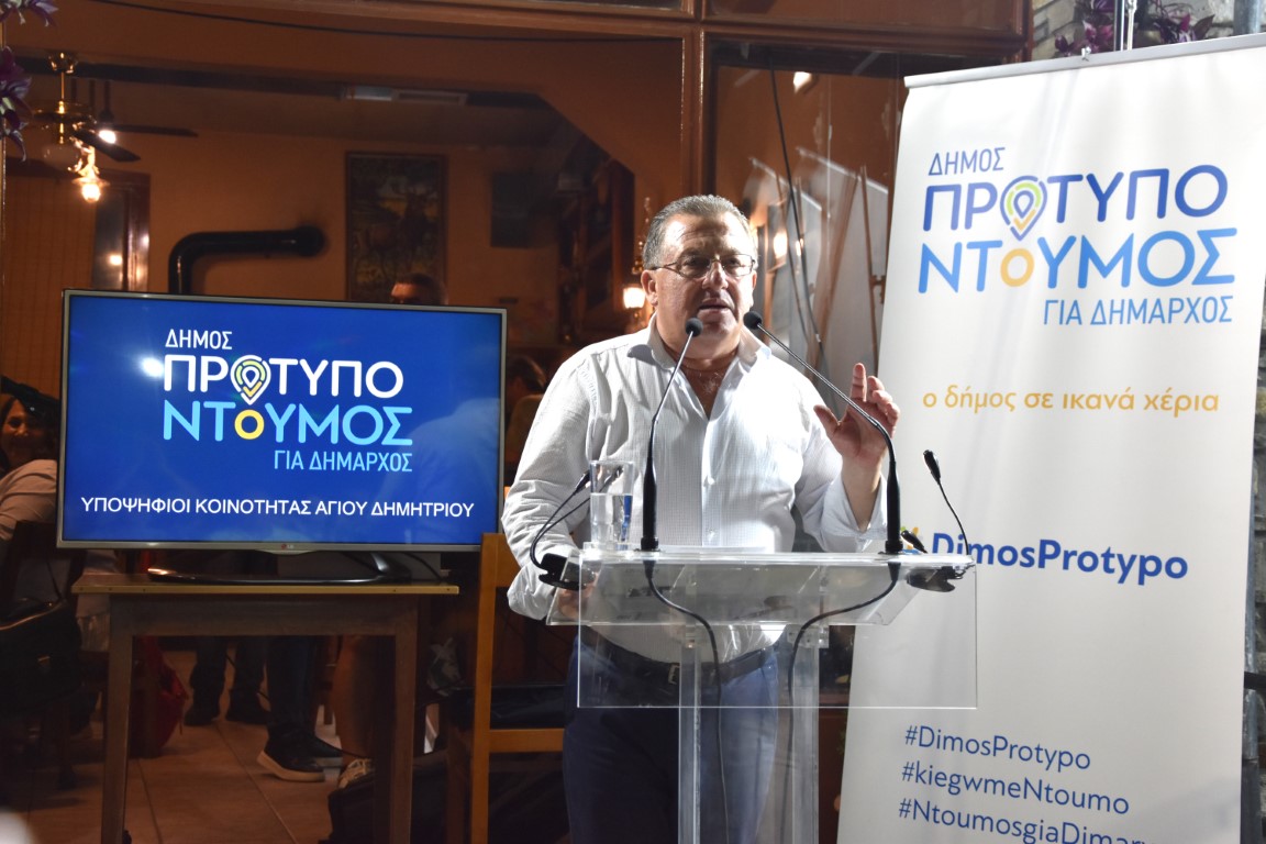 Από την πλευρά του ο Γιάννης Ντούμος διαβεβαίωσε τους κατοίκους ότι θα νικήσει στις εκλογές όχι μόνο επειδή το θέλει εκείνος αλλά κυρίως «επειδή το θέλετε εσείς!», όπως ανέφερε χαρακτηριστικά. Τόνισε όμως ότι για να έρθει αυτή η πολυπόθητη νίκη θα πρέπει, στις λίγες ημέρες που απέμειναν, να δοθεί αγώνας «πόρτα – πόρτα», «πρόσωπο με πρόσωπο».