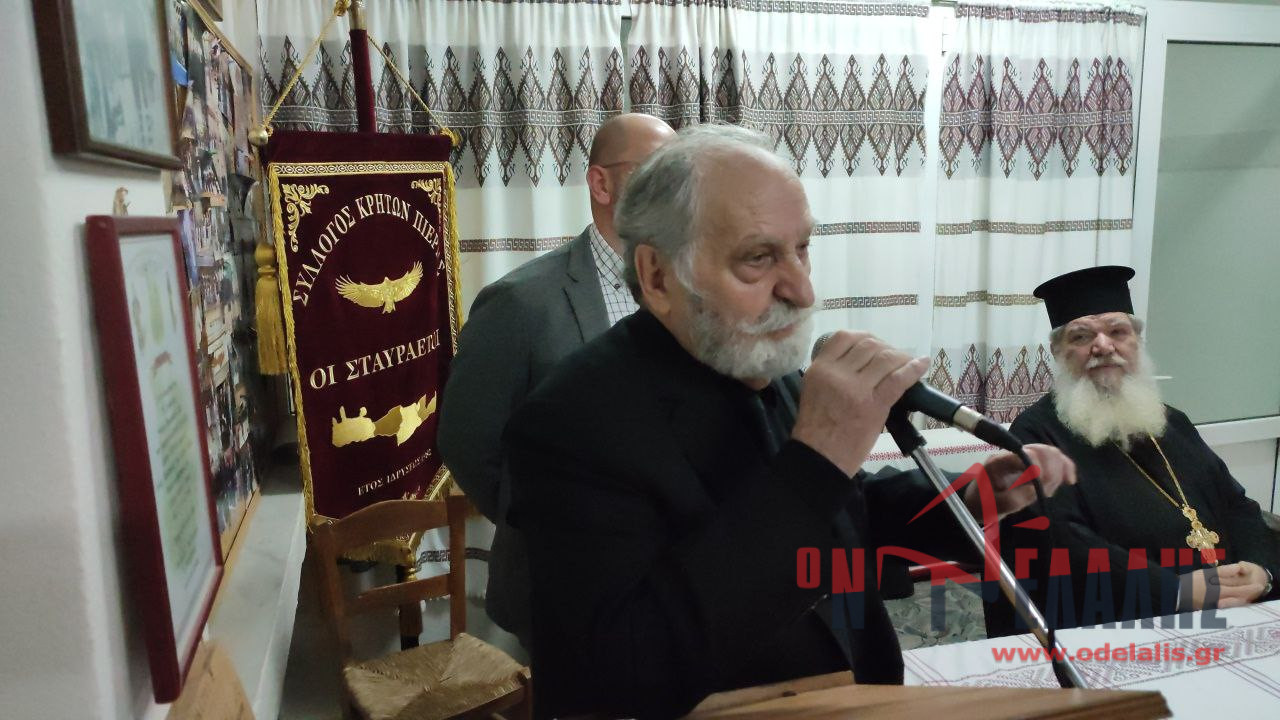 Παράλληλα, προέβη σε έναν συνοπτικό απολογισμό των δράσεων κατά την περασμένη πολιτιστική περίοδο, με έμφαση στην συμβολή του συλλόγου στις εκδηλώσεις της Ιεράς Μητροπόλεως Κίτρους, Κατερίνης και Πλαταμώνος, για την κατάθεση ιερών λειψάνων των Αγίων Τεσσάρων Κρητών Νεομαρτύρων στον Ιερό Ναό Αγίου Κοσμά Αιτωλού Ανδρομάχης, στη συμμετοχή στο αφιέρωμα των «Αικατερινείων» στον Απόστολο Κονταξάκη. Επίσης, αναφέρθηκε και στις προσεχείς προγραμματισμένες εκδηλώσεις, όπως π.χ. ο ετήσιος χορός στις 15 Φεβρουαρίου, το αντάμωμα, η επετειακή εκδήλωση για τη Μάχη της Κρήτης κ.ο.κ.
