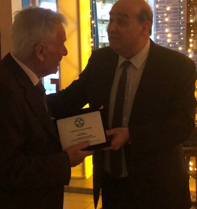 Ακολούθησε η απονομή τιμητικής πλακέτας στον κ.Μπλιάτσιο Δημήτριο για την πολυετή προσφορά του στην γραμματεία του Ιατρικού Συλλόγου Πιερίας.
