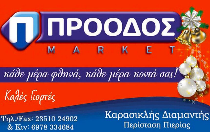 Το market ΠΡΟΟΔΟΣ σας εύχεται Καλά Χριστούγεννα