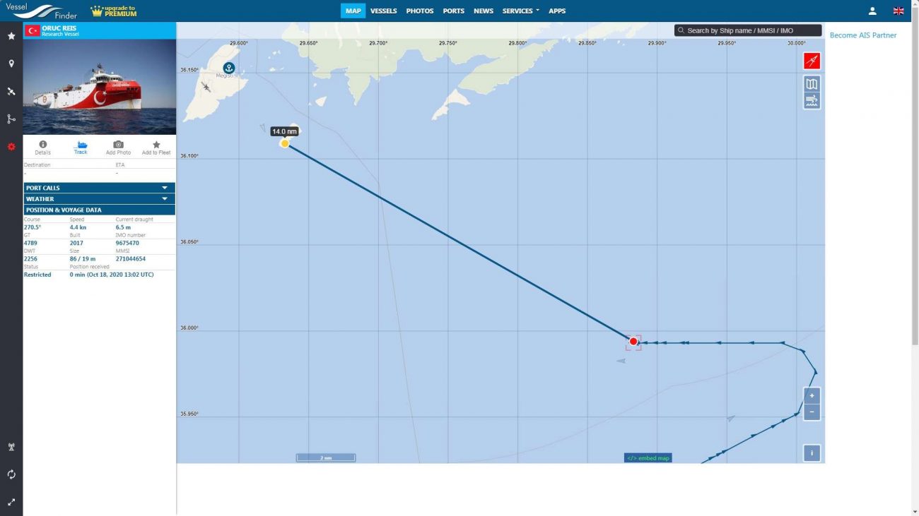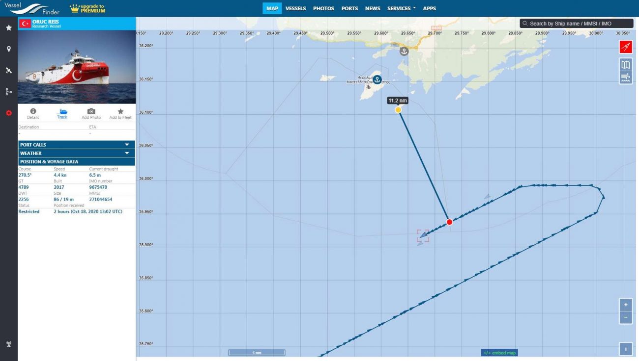 Το Oruc Reis αφού έκανε την παραβίαση, το σκάφος άλλαξε πορεία, αλλά δεν αποκλείεται να επανέλθει και να φθάσει ακόμη πιο κοντά στο Καστελόριζο.