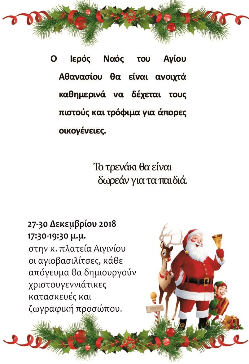Το πρόγραμμα εκδηλώσεων στην «Αυλή του Άη Βασίλη» στο Αιγίνιο
