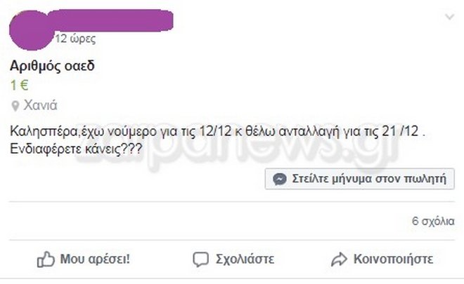 Μέχρι και αγγελία χρειάστηκε στο facebook, για να γίνουν ανταλλαγές μεταξύ των Χανιωτών που έχουν πάρει νούμερο στον ΟΑΕΔ και προσπαθούν να το ανταλλάξουν για κάποιο που τους βολεύει καλύτερα.