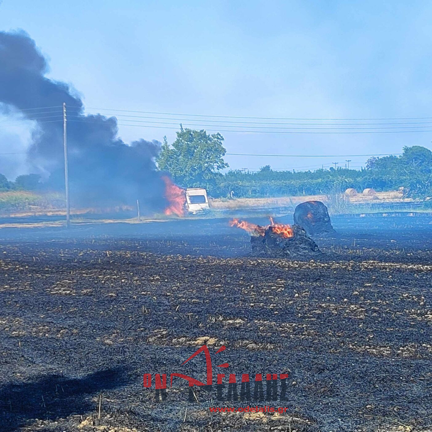 Φωτιά σε χωράφια αυτή την ώρα έξω από την Περίσταση. Καίγονται καλαμιές, καλλιέργειες, καθώς και μπάλες με άχυρα. Κάηκε θερμοκήπιο με καλλιέργειες.