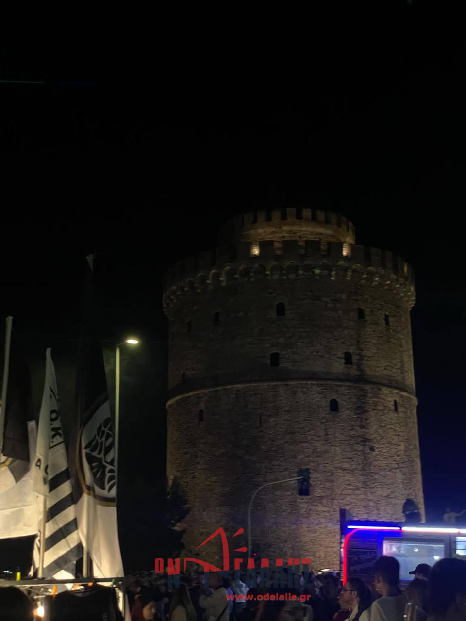 Μετά το «Κλεάνθης Βικελίδης» και την Τούμπα, το τρελό πάρτι για τους παίκτες του Πρωταθλητή Ελλάδος στήθηκε στον Λευκό Πύργο. Από την Τετάρτη που οι παίκτες του Λουτσέσκου προσπέρασαν στη βαθμολογία την ΑΕΚ η «απαίτηση» του κόσμου ήταν νίκη επί του Άρη και κύπελλο πρωταθλητή στον Λευκό Πύργο. Χιλιάδες φίλοι του ΠΑΟΚ, παρά το προχωρημένο της ώρας, σε μια πόλη «μεθυσμένη» από την επιτυχία, υποδέχθηκαν τους πρωταθλητές με συνθήματα και βεγγαλικά, στήνοντας ένα ατέλειωτο πάρτι που κράτησε μέχρι το πρωί!
