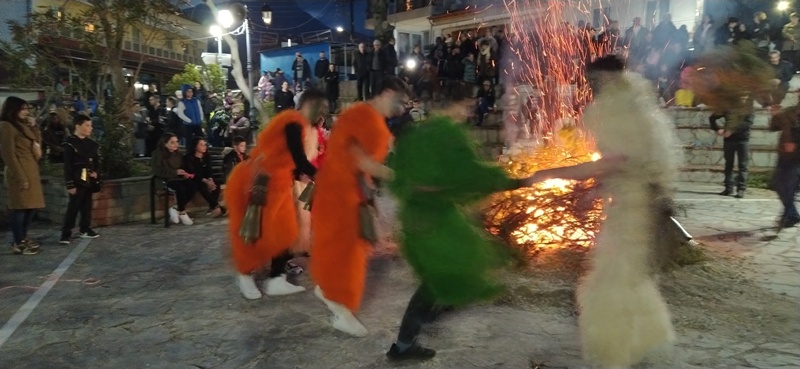 Το βράδυ της Κυριακής 17 Μαρτίου τα «Λιαγκατζιάρια» συνεχίζουν όπως το Σάββατο, αλλά η κατάληξη είναι στην κεντρική πλατεία του χωριού γύρω στις 20.00. Εκεί έχει διαμορφωθεί κατάλληλα ο χώρος έχουν στοιβαχθεί τα κέδρα και παίρνουν φωτιά! Τότε και καθώς τα κέδρα «πριατσιαλνούν» (ο θόρυβος που κάνουν τα χλωρά κέδρα όταν καίγονται) αρχίζει ο χορός γύρω από τη φωτιά, αλλά και το πήδημα της φωτιάς για να καούν τα κακά πνεύματα, να εξαγνιστεί το σώμα!